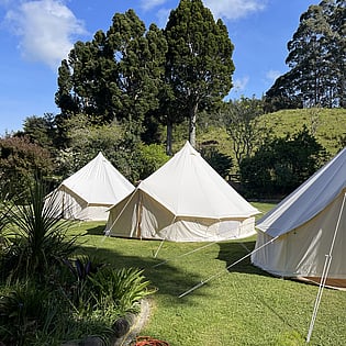 Onetai Estate has expansive lawn with direct access to Coromandel Forest park. There are 7 rooms inside the property, with options for glamping tents to accommodate groups of up to 26 for overnight stays.